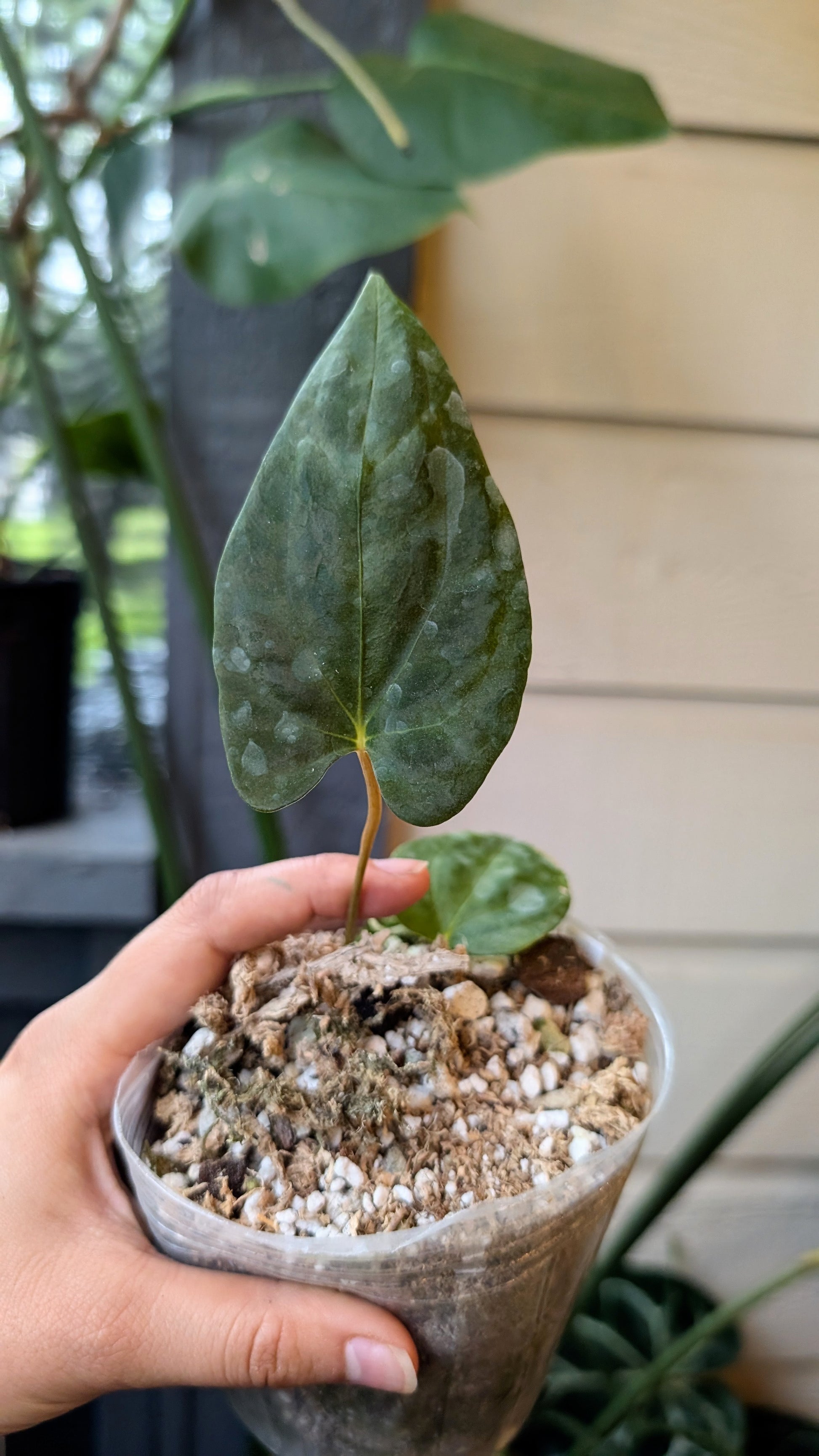 Bold, dagger-shaped foliage that makes a statement in any collection. This RLFS x Carla hybrid features large, dark green, velvety leaves and shows a natural tendency to climb. Snag this fully rooted bottom cut at a discount and add this must-have beauty to your grow space!